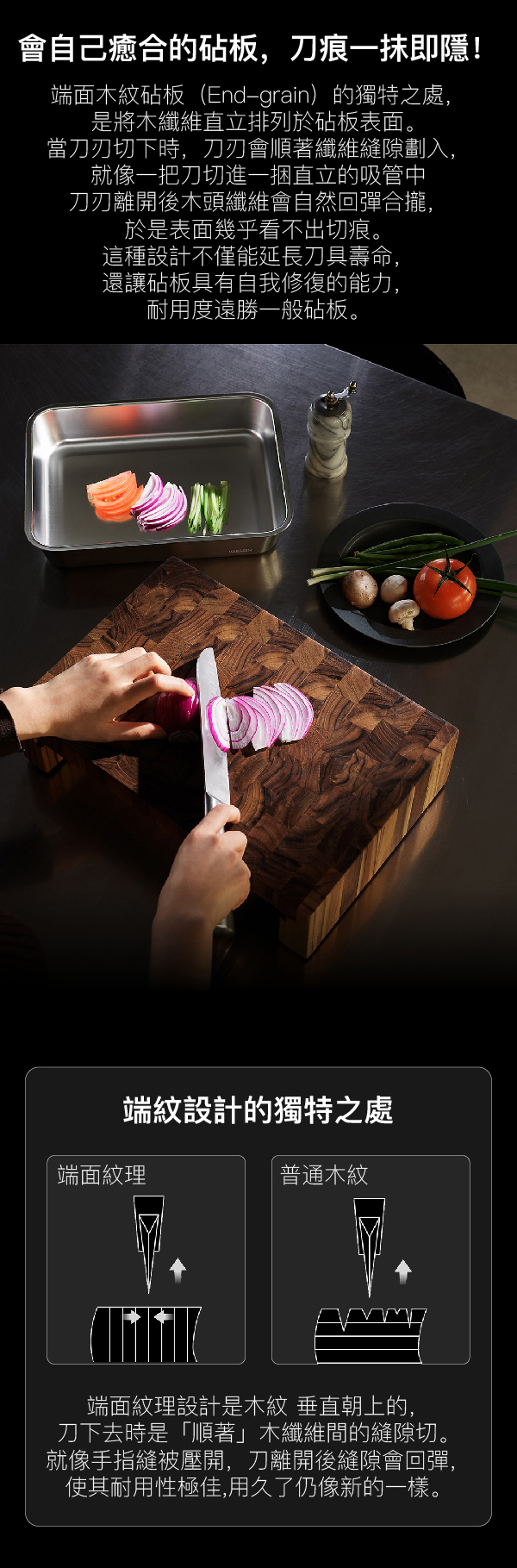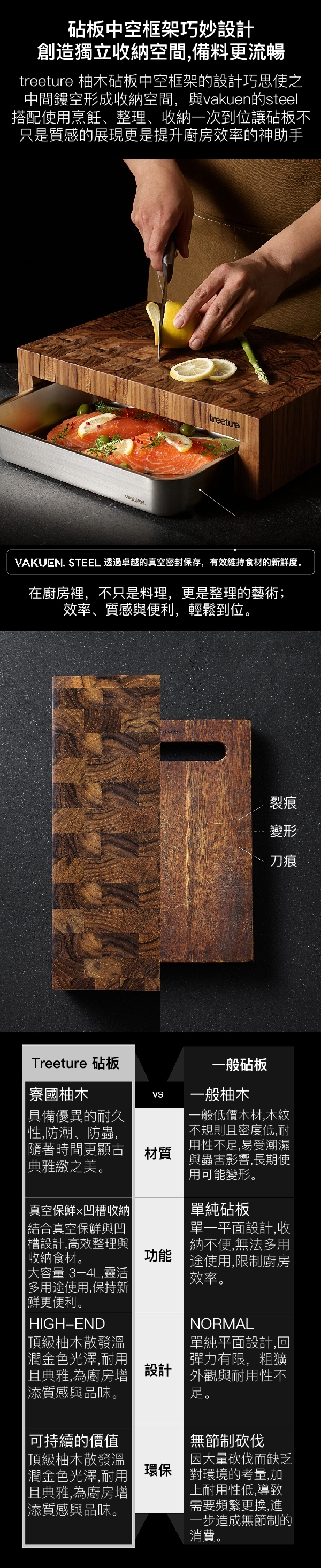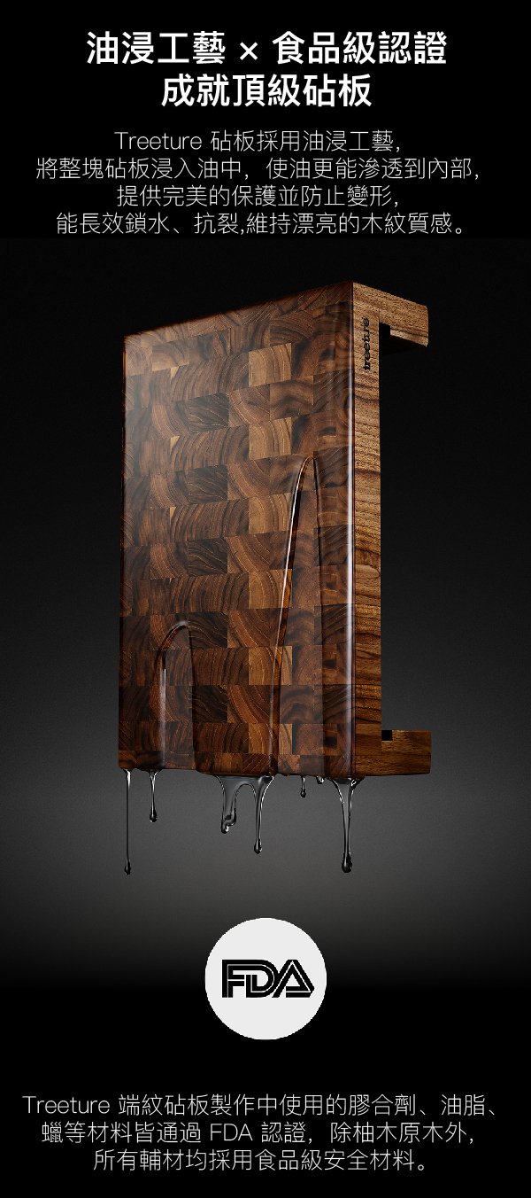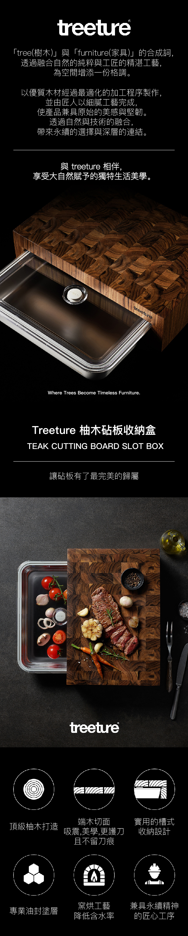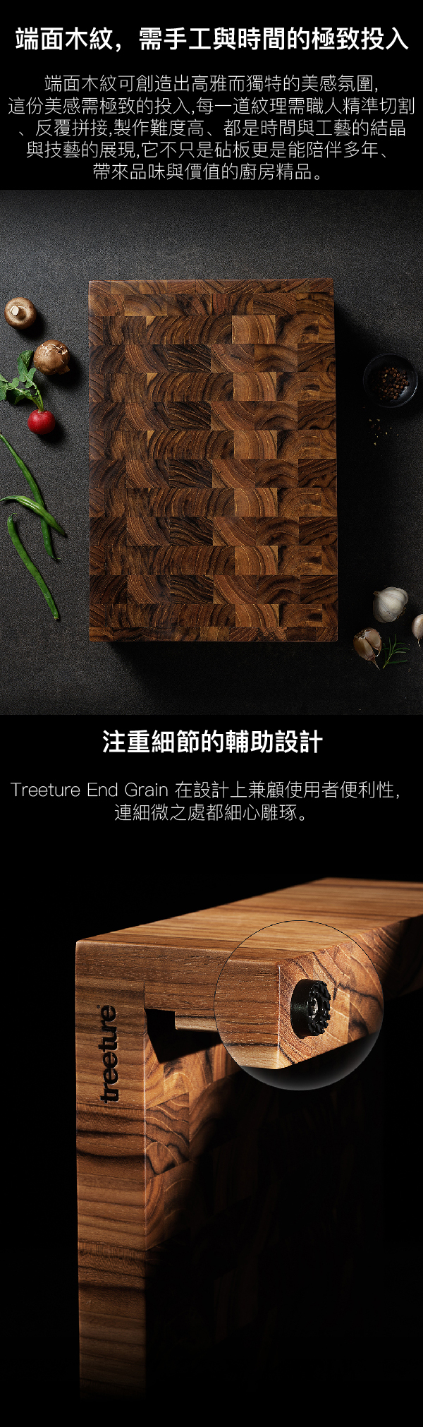 Treeture柚木端紋砧板,選用優質柚木製作,端紋設計耐用不傷刀,適合日常切菜與料理使用。