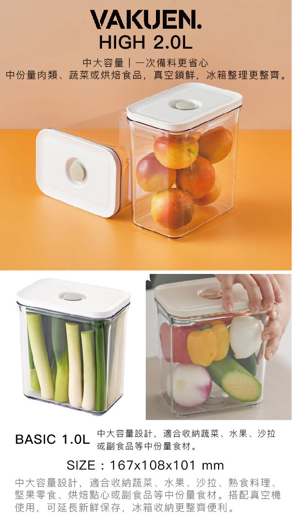 適合食材:麵包、蔬菜、肉類、湯品、熟食或需直立保存的食材