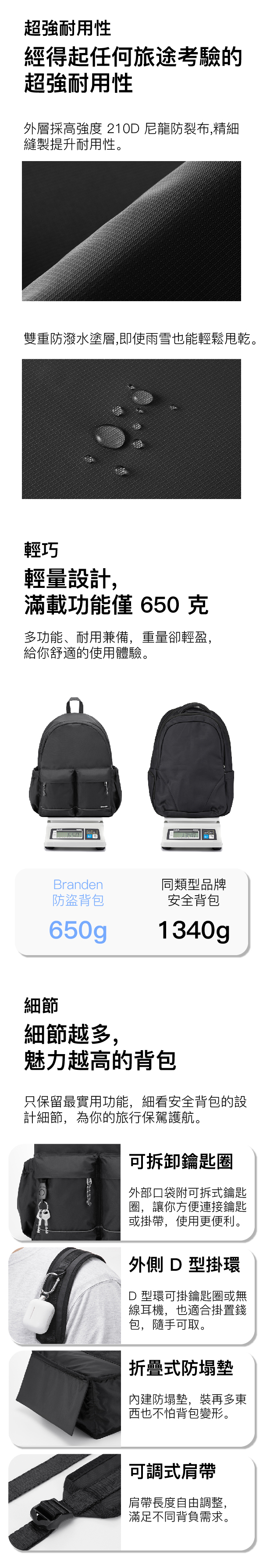 無論日常通勤或旅行,都能安心使用