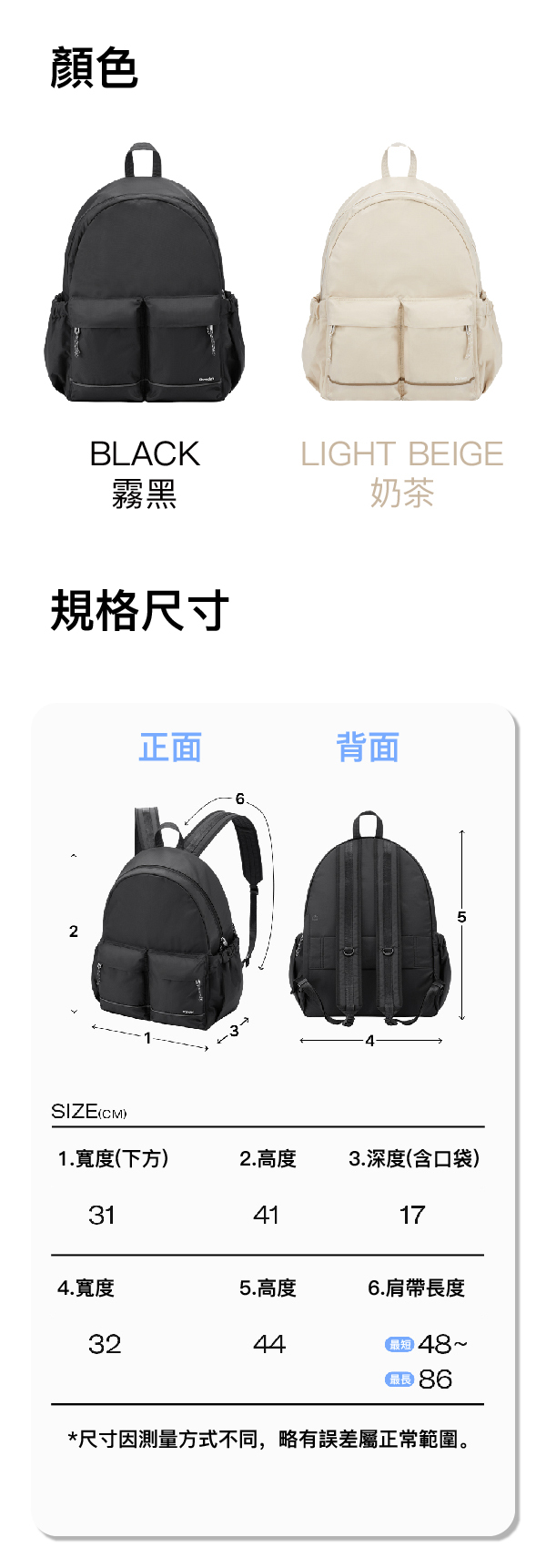 輕巧耐用,肩帶可調整長度,背負舒適;
